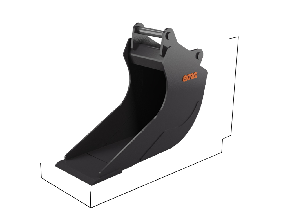 Kabelskopa heavy duty. Heavy duty (HD) är kraftpaketet i vårt produktsortiment. Här tummas det inte på något när det kommer till material. Produkterna utrustas med slitribbor i botten samt att produkterna ofta är grövre dimensionerande. Detta kraftpaket används mest av brukare som ställer mycket höga krav på sina produkter och där man ofta arbetar i material samt miljöer som kräver det lilla extra när det kommer till tålighet. Denna kategori av skopor är ofta tyngre då man använder extra stål, men detta resulterar i att man får en mycket slitstark skopa. Skär i 500 Brinell BOROX. Slitskydd på sidorna, gavel fram, botten och slitribbor i 450 HARDOX. Skopan är framtagen tillsammans med maskinförare. Modern design med lång botten. En konisk kabelskopa medför att materialet inte fastnar lika lätt i skopan. Den ger även ett bredare och stabilare schakt.